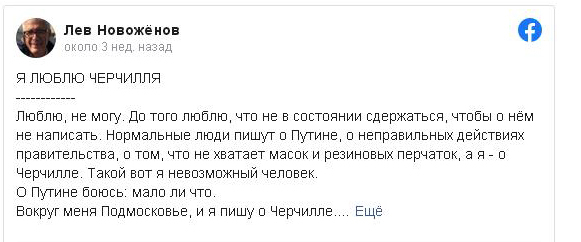 Ольга Шаблинская, «АиФ»: — Лев Юрьевич, недавно в соцсети вы разместили довольно ироничный пост о Черчилле. С чего вдруг Новожёнову захотелось пройтись по премьер-министру Великобритании?