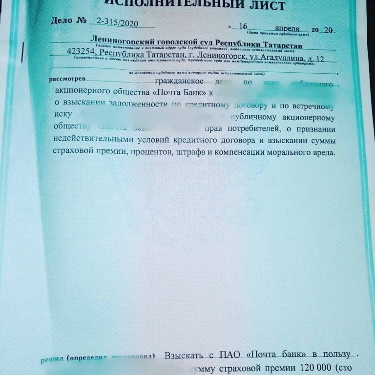 Хотели бы взыскать страховку с Почта Банк и вернуть свои деньги?