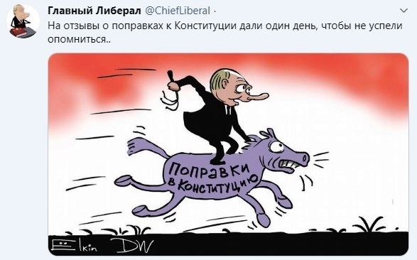 "Изменение Конституции России, предложенное Владимиром Путиным и зависимыми от него людьми, направлено на решение одной задачи – обеспечение пожизненной власти самого Путина и его группы. Это изменение противоречит духу и букве действующей Конституции и принимается по абсолютно неконституционной процедуре, где каждое действие нарушает конституционные основы государства и демократические правила. По существу, мы имеем дело с попыткой государственного переворота".