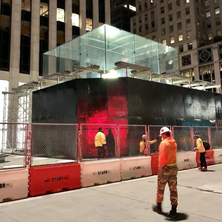 Стеклянный куб Apple Store в центре Манхеттена зашивают в металл