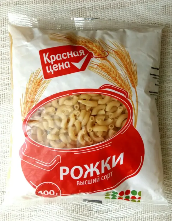 С рожками все несколько неоднозначно. Изготовлены по ГОСТу, в составе только мука высшего сорта и вода. Относятся к группе B, значит изготовлены не из твердой пшеницы, а мягкой. Не развариваются, не слипаются. В пищу более, чем пригодные. Но мы с мужем сравниваем их с привычными нам рожками марки «Шебекинские» и «Красная цена» явно проигрывают им по вкусовым и эстетическим качествам, по нашему субъективному мнению. Конкурент, кстати, относится к группе А. Но «Шебекинские» стоят 29,90 рублей по акции, а эти всего 13,49. Более, чем в два раза. Мы пока не решили, действительно ли любимые наши макароны настолько лучше, чем «Красная цена», чтобы настолько переплачивать. Наш вердикт – достойный продукт, но не лучший!