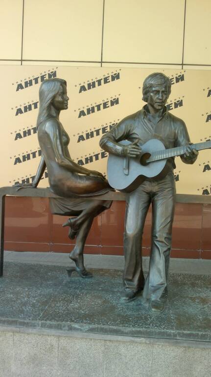 Никогда Марина Влади не была такой субтильной, как в бронзовой скульптуре, установленной в Екб по ул. Красноармейской в 2006 году. Недалеко гостиница "Большой Урал". Автор Андрей Гавриловский. А после дождя они оба мокрые и блестящие.