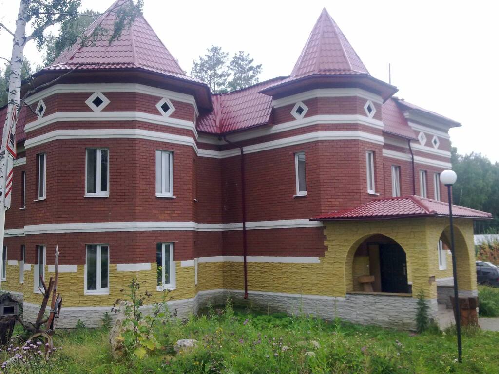 Административно - жилой корпус на турбазе "Оленьи Ручьи" под московские царские палаты, где есть жилые комнаты. Моя была на втором этаже как раз над дверью.