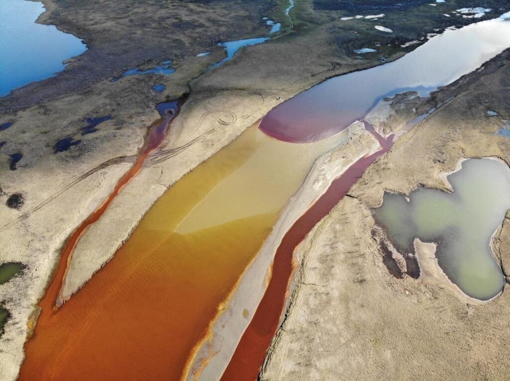 Последствия нефтеразливов в Норильске сняли с высоты птичьего полета