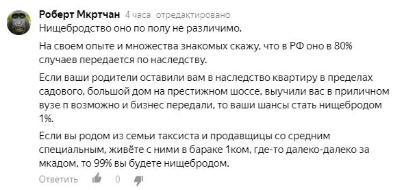 -Если кто-то чего-то добился, то это либо случайно, либо родители помогли (дали денег, продвинули, используя связи).