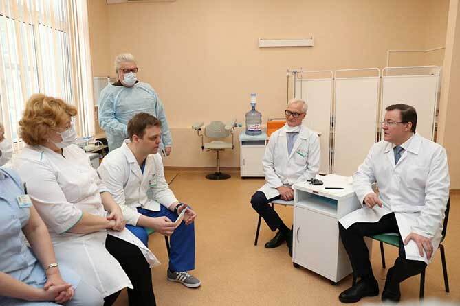 1 апреля к нам в больницу приезжал губернатор Самарской области Дмитрий Игоревич Азаров и встречался с коллективом медицинских работников. Подробно разговаривал с врачами об особенностях лечения, о потребностях и вопросах, которые нужно решать на уровне правительства.