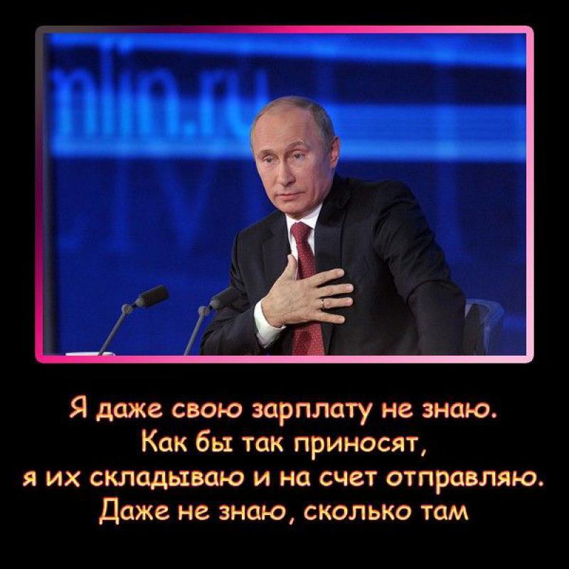 Этот человек правит нашей страной уже 20 лет. С его слов, он постоянно думает и заботится о нас, вся его "рабская", галерная работа, направлена лишь на то, чтобы россиянам жилось вольно и сытно. Президент "мочил в сортире" террористов, объявлял "посадки" коррупционеров, отделял "мух от котлет" и даже не совсем печально констатировал после гибели подводной лодки Курск, что "она утонула".