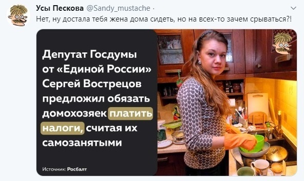 Только в путлеровском государстве такое возможно: потому как в трижды клятых урапатриотами США, любая домохозяйка сидящая дома и неважно, с детьми или без, всё равно будет законно получать 2/3 пенсии мужа. И пусть эта депутана-единораст попробует ТАМ такое предложить, во смеху-то будет