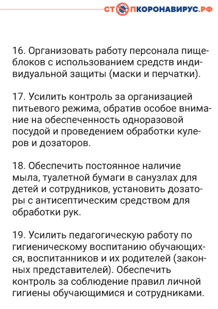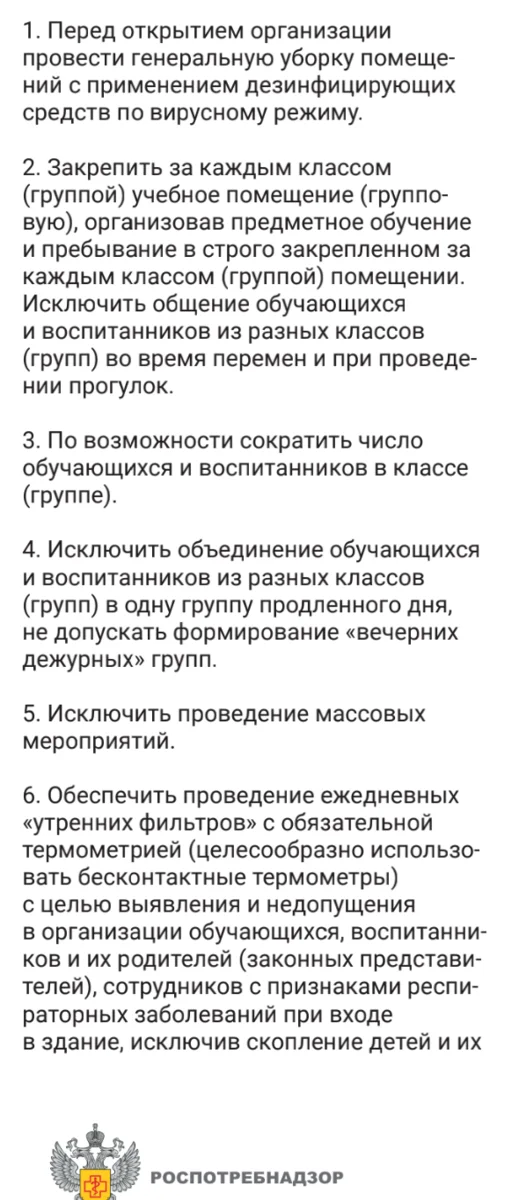 В этих рекомендациях много пунктов, кому интересно можете почитать на сайте Роспотребнадзора.