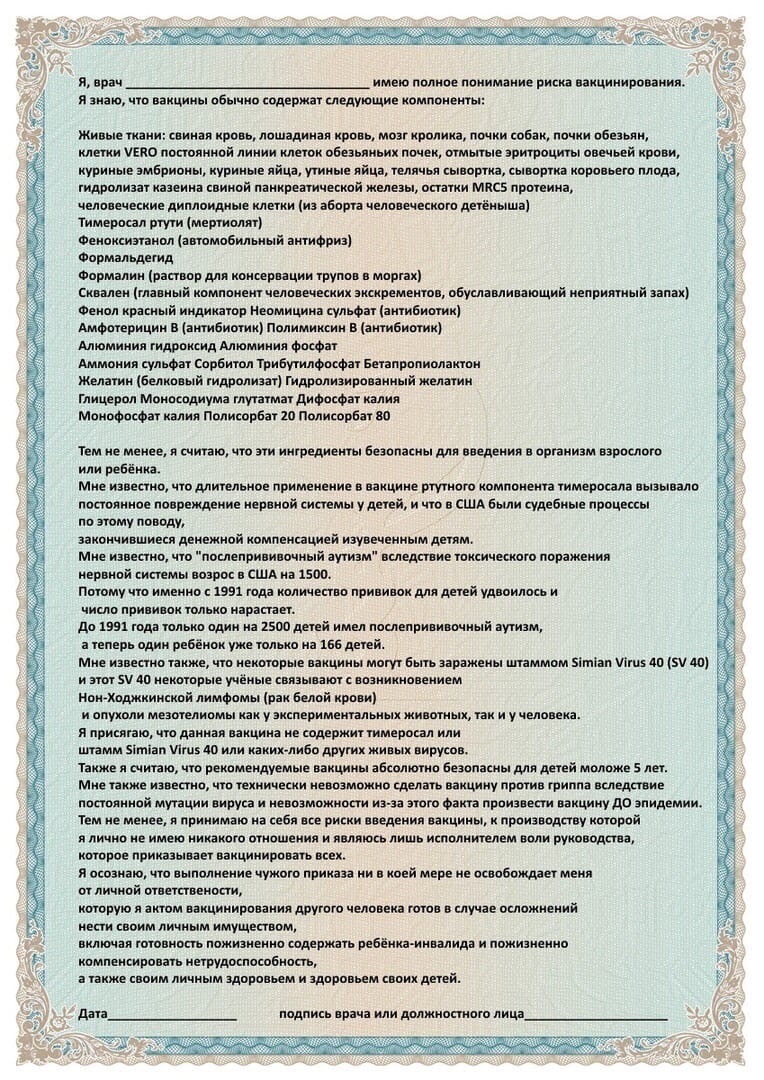 Пусть сначала подпишут все (кто будет делать эту вакцину) сей документ, что на фото! То есть главврач, терапевт и медсестра:
