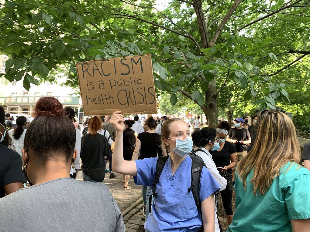 "Расизм - это пандемия". В Нью-Йорке медики вышли на митинг в поддержку афроамериканцев.