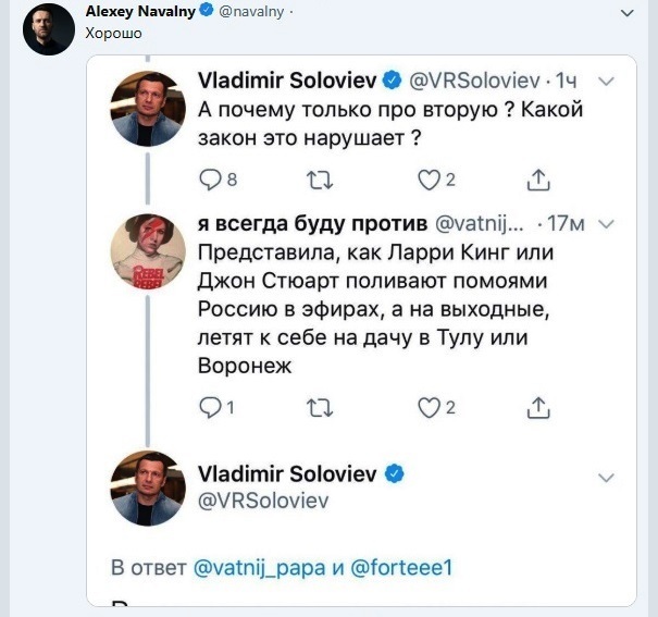 "Видно моё воспитание Советском Союзе было более патриотичным чем ваше."