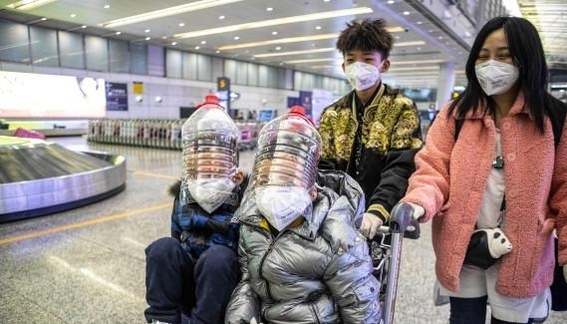А вот такими самодельными костюмами, защищаются люди в аэропорту.