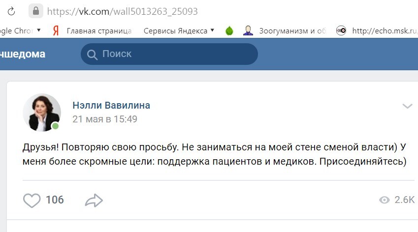 Прекрасным подтверждением того, что ЕР и СР "на один карман работают", может, на мой взгляд, служить вот это обращение члена бюро Регионального отделения партии Справедливая Россия в городе Санкт-Петербурге и Главы муниципального образования "Гавань" шестого созыва Нэлли Юрьевны Вавилиной к своим подписчикам ВКонтакте: " ... прошу не заниматься сменой власти..."