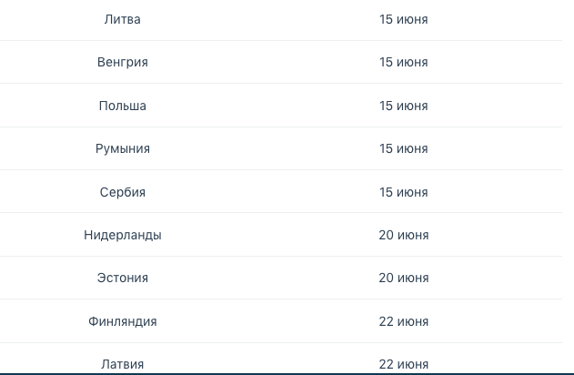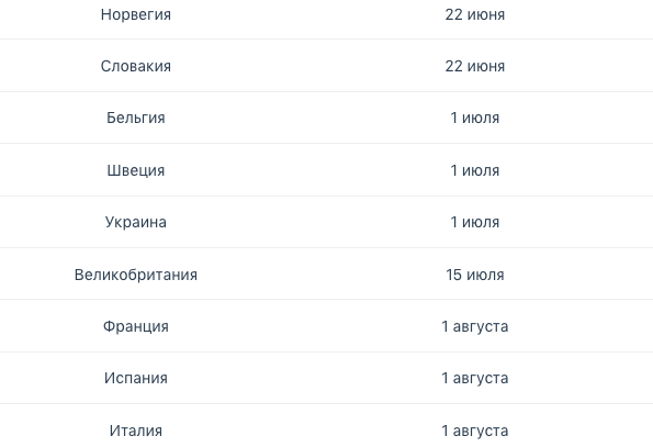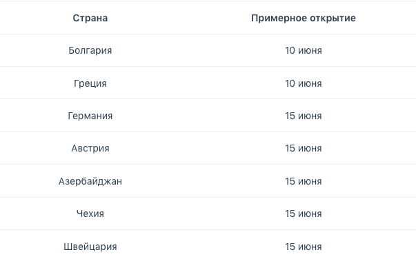 И все-таки постараемся хотя бы приблизительно ответить на данный вопрос. Ниже представлен примерный план открытия государственных границ в Европе. Сразу скажем, информация может быть не самой достоверной, но это не так важно, ниже расскажем почему.