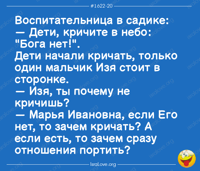 — Тетя Циля, а ваш маленький Яша ест газету! — Пускай ест, она вчерашняя.