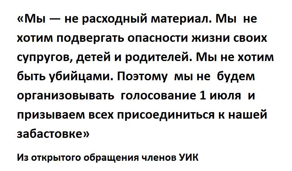 К собирающимся бойкотировать голосования избирателям, могут присоединиться и сами организаторы, члены избирательных комиссий с правом решающего голоса. Такое чудо происходит впервые за всю историю новороссийского свободолюбивого народного волеизъявления! Члены избиркомов подготовили и начали распространять обращение к своим коллегам: