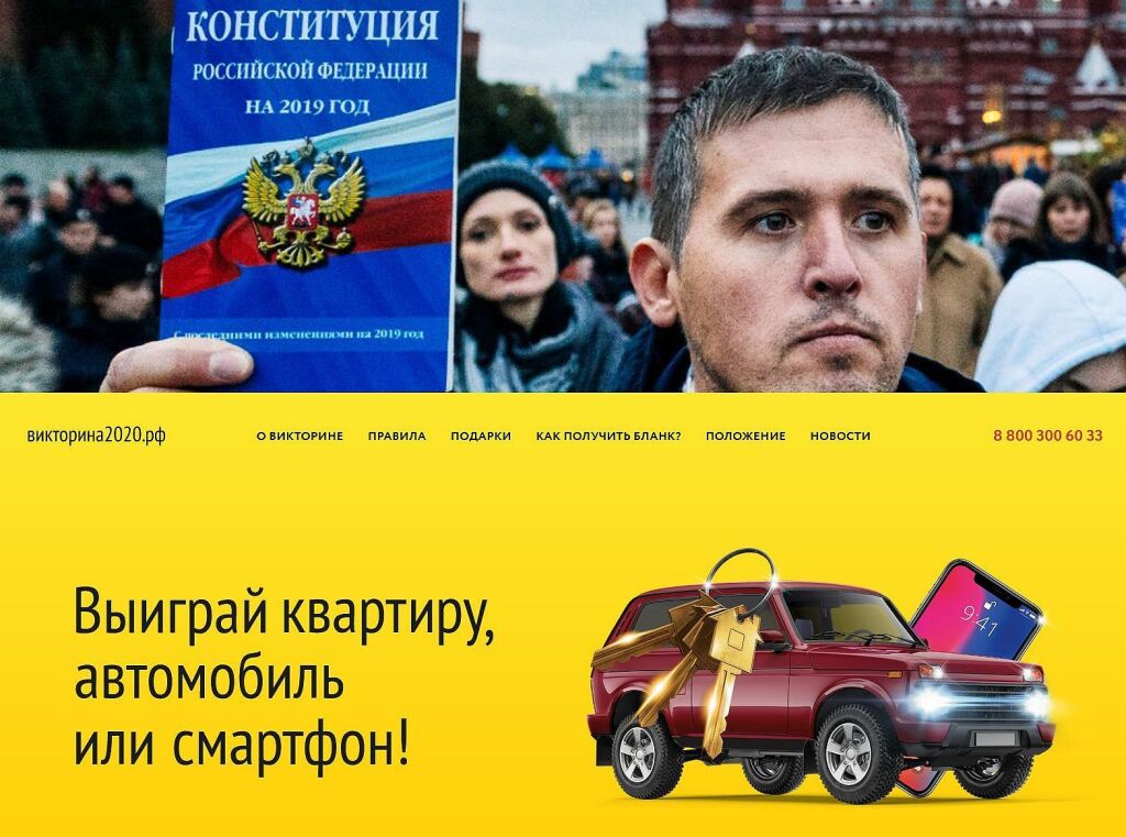 Сначала о замечательном. В цветущем Красноярском крае, которому все вирусы "по барабану", объявлен карнавальный розыгрыш десяти однокомнатных квартир, десяти автомобилей и 50 смартфонов! Без уточнения количества, перспективным красноярцам сулят так же планшеты и телевизоры. Чтобы въехать в счастливое будущее с поправленной Конституцией и вожделенным призом, надо просто принять участие в викторине на знание основного документа страны, получить и заполнить бланк с последующей передачей его радушному активисту.