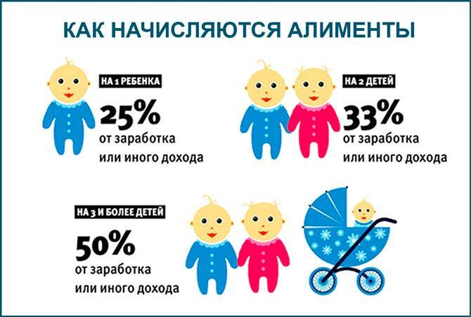 Размер алиментов рассчитывают от полученного дохода, в зависимости от числа детей: