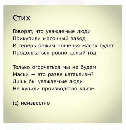 Да давно все всё поняли, но и без того бедное население легко подчинить штрафами и акциями, вот и помалкиваем в масочку.