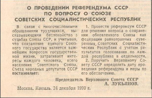 По данным комиссии по Союзу ССР в целом: в списки граждан, имеющих право участвовать в референдуме СССР, было включено 185 647 355 человек; приняли участие в голосовании 148 574 606 человек, или 80% процентов. Из них ответили: «Да» 113 512 812 человек, или 76,4%; «Нет» — 32 303 977 человек, или 21,7%; Признаны недействительными — 2 757 817 бюллетеней, или 1,9 %.