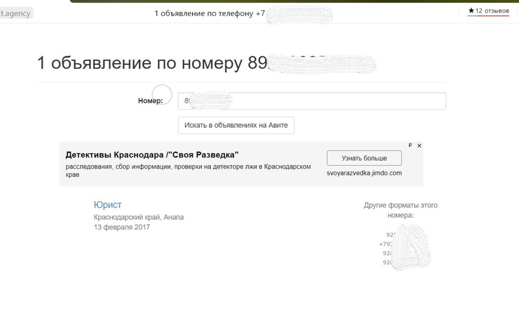 Пример я подавал объявление в 2017 году. Номера в интернет-ресурсах остаются на долгие годы.