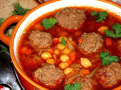 Сформировать из фарша небольшие фрикадельки и аккуратно добавить их варится к нуту