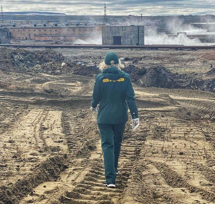 Вот он,Норильск, где только что почистили грунт от разлившейся "дизельки".Радионова проверяет.