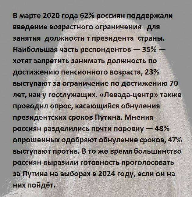 И это, видимо, ровно та причина, по которой надо голосовать за обнуление. 20 лет у власти было мало, чтобы хоть что то изменить, надо еще, как минимум 12.