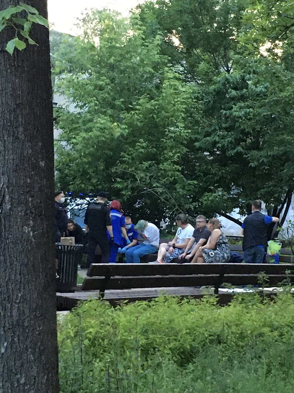 Вот и полиция со «Скорой» подтянулась (они одни до сих пор в масках ходят).