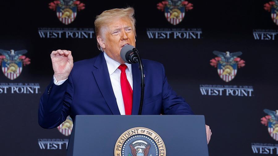 «Вы начинаете свою карьеру в армии в решающий момент американской истории. Мы возвращаем основополагающие принципы, согласно которым задача американского солдата состоит не в том, чтобы восстанавливать другие страны, а в том, чтобы оборонять и решительно защищать нашу страну от внешних врагов», — отметил республиканец.