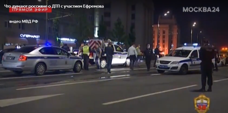 Авария с участием Ефремова произошла вечером 8 июня на Смоленской площади в Москве. Джип, которым управлял актёр, врезался в фургон «Лада». Водитель «Лады» Сергей Захаров сильно пострадал и умер в больнице. Экспертиза обнаружила, что в момент ДТП Ефремов был пьян. Перед этим он мог посещать бар. Суд отправил Ефремова под домашний арест. Эксперты предрекают ему срок в несколько лет в колонии-поселении.