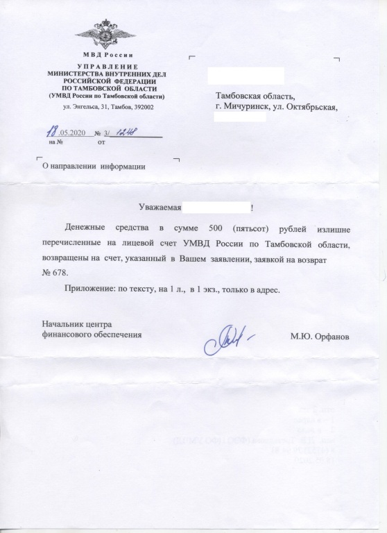 Получив от ЦАФАП г. Тамбова постановление об АПН о превышении бабушкой скорости на 15 км/ч, она, по её словам, направила предложение погасить долг добровольно. Но по адресу, по которому привлечённая к ответственности не живёт.