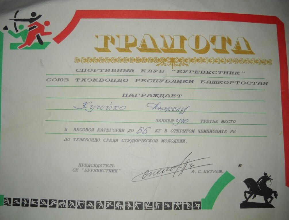 Я, в школьные и институтские годы очень активно и профессионально занималась дзюдо, тхеквондо и лёгкой атлетикой.