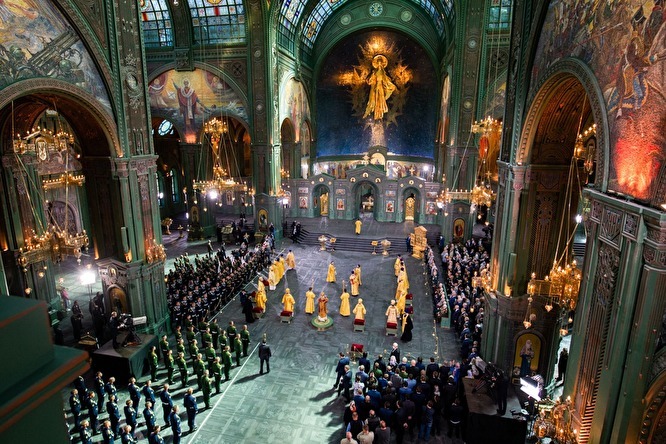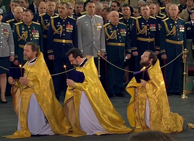 И ни в ком из служивых не было заметно проявление храмовой культуры. То есть умения координировать свои действия с теми или иными моментами службы, жестами и словами священников. Когда патриарх и духовенство вставали на колени, никто из них даже голову не склонял. Поэтому слова патриарха про единство армии и церкви были отвергаемы поведением тех, кому и о ком он вроде бы говорил.