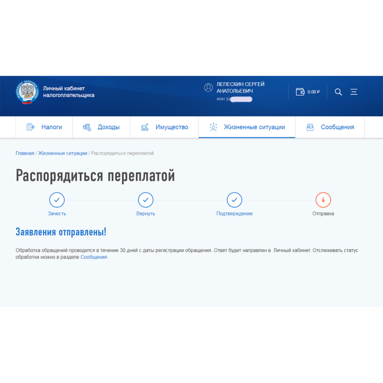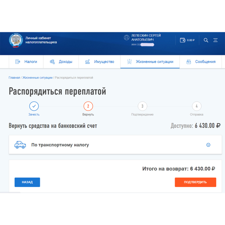 ⚜️В качестве положительного примера использования данного сервиса приведу ситуацию, которая случилась со мной сегодня. Зайдя в свой личный кабинет налогоплательщика, я увидел, что у меня образовалась переплата по транспортному налогу. Переплата возникла, скорее всего, в результате продажи автомобиля, о чём я не узнал бы так быстро, не будь у меня под рукой данного сервиса. Очень приятная неожиданность и очень быстрое решение вопроса. Заявление на возврат было оформлено и подано в несколько кликов, буквально за 5 минут, не выходя из дома! Смотрите сами в конце публикации⬇️⠀