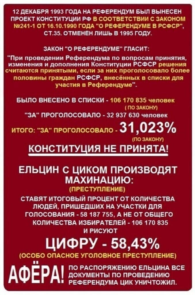 Процедура народного голосования изначально незаконна, поскольку не прописана в Конституции РФ и служит цели подменить собой всенародный референдум, который только и может изменить основы конституционного строя в России.