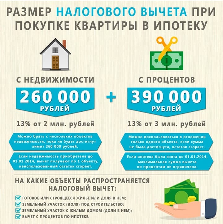 Также при приобретении имущества в общую долевую собственность до 1 января 2014 года размер вычета распределяется между совладельцами в соответствии с их долей/долями собственности.