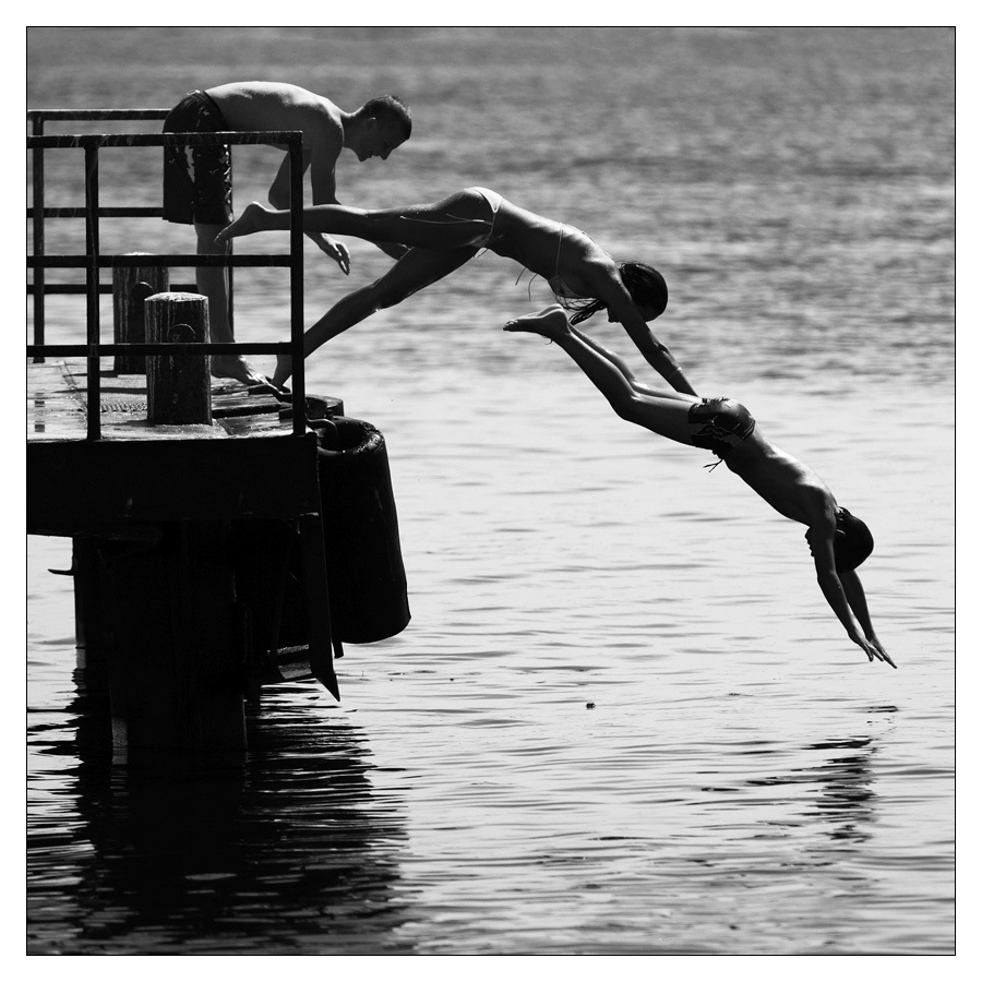Признаюсь, я тоже ныряла "бомбочкой" с пешехоного моста, метра 2-3! Без присмотра взрослых. Бывало прыгнешь и пластом получится, больно! Но это не останавливало нас!))