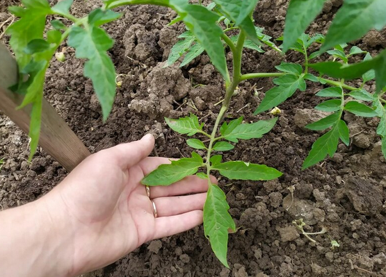 Сразу же при высадке помидорной рассады в грунт на участке (непринципиально, открытый или тепличный) рекомендуется обрезать или просто оборвать самые нижние листья. Но только те, что лежат на земле или касаются ее.