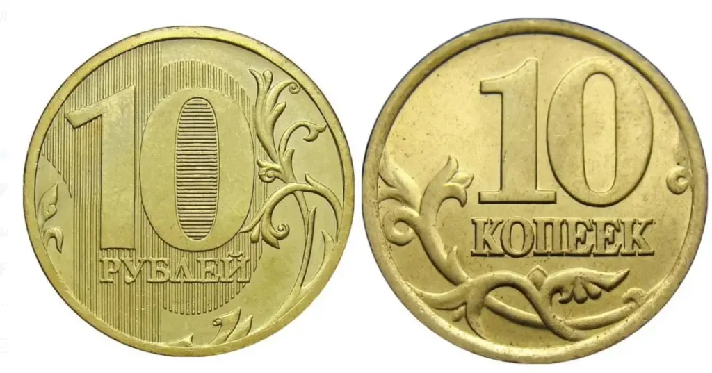 сходство 10 рублей и 10 копеек