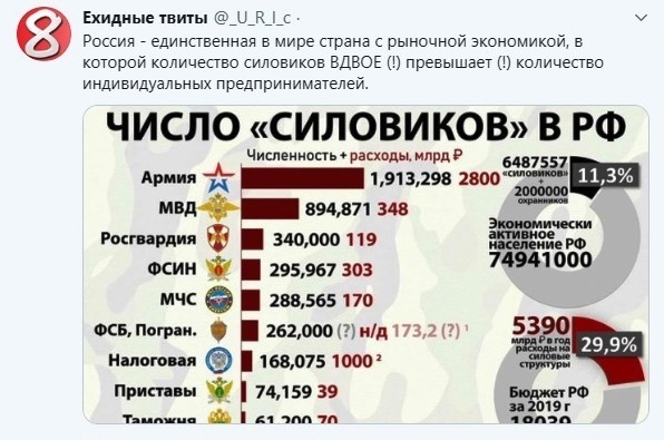 Я выше объяснил почему говорю за народ. Народу терять уже нечего, у него уже ничего не осталось, а то что осталось отжимают предоставлением не ограниченой свободы мафии на местах - ТСЖ, ТСН, СНТ... Так, например в Москве пенсионеров вынуждают избавляться от недвижимости в центре, задирая непомерно тарифы на содержание общедомового имущества... Бизнес тоже начинает избавляться от активов и готовится сваливать за границу. Наш работодатель всё распродаёт, а у него не мало фирм и соответственно рабочих мест... Только что проехал по промзоне... одни баннеры "продаётся" и останки былых предприятий... от нашего "Машзавода" один каркас остался... могу фото приложить свежее... Если и есть кому терять свои пенсии, так это только бывшим силовикам, у которых они больше зарплат ныне работающих... но, это всего лишь прослойка... А смена Президента совершенно не означает смену конституционного слоя. Это уже будет анти-конституционный переворот, к которому ведёт продолжение нынешней политики... Стране нужны у руля хозяйственники, умеющие и доказавшие на практике что-то создавать, а не силовики, умеющие только отнимать и делить... И такие кандидаты были, и это не Навальный, которому нынешняя власть даёт шанс прийти к власти на волне народного недовольства...