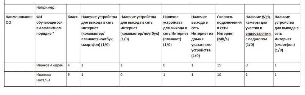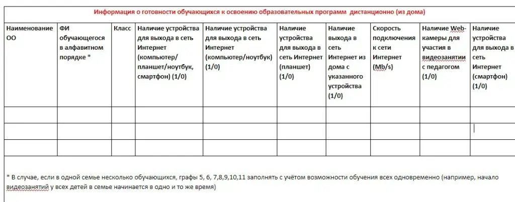 Мало того, что нужно опросить всех детей каждого класса о наличии устройства-компьютер, планшет, ноутбук и узнать о выходе в интернет и прочее, так нужно указать наличие вебкамеры для видеоуроков и смартфонов. При этом многие учителя в отпуске