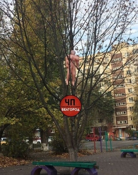 Свидетелями необычной утренней картины стали жители микрорайона Восточный в Старом Осколе. Белгородцы в комментариях уже высказали самые разные версии по поводу того, как надувная кукла оказалась на дереве.