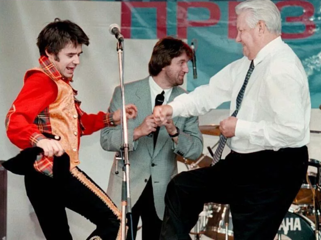 Несмотря на самочувствие, Ельцин тоже демонстрировал настоящий кураж, а во время одного из предвыборных концертов лихо пустился в пляс под зажигательную песню Евгения Осина «Ялта».