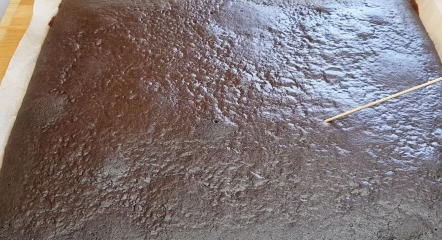 Готовность коржа проверяем деревянной шпажкой, прокалываем, если она сухая, значит корж готов.