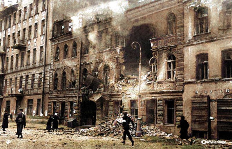 На снимке руины на улице Достоевского в Ленинграде в 1941 году