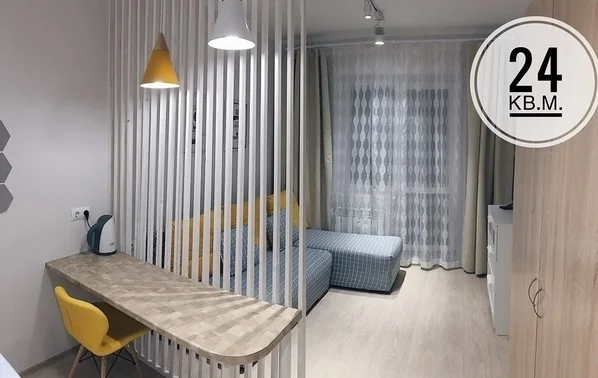 Студию 24 квадрата с помощью перегородки превратили в что-то похожее на однушку