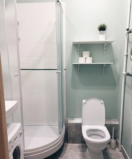 С перегородкой получилось очень хорошо. Если бы вместо душевой кабины поставили просто поддон со стеклянной перегородкой. То выглядело бы еще более просторнее.