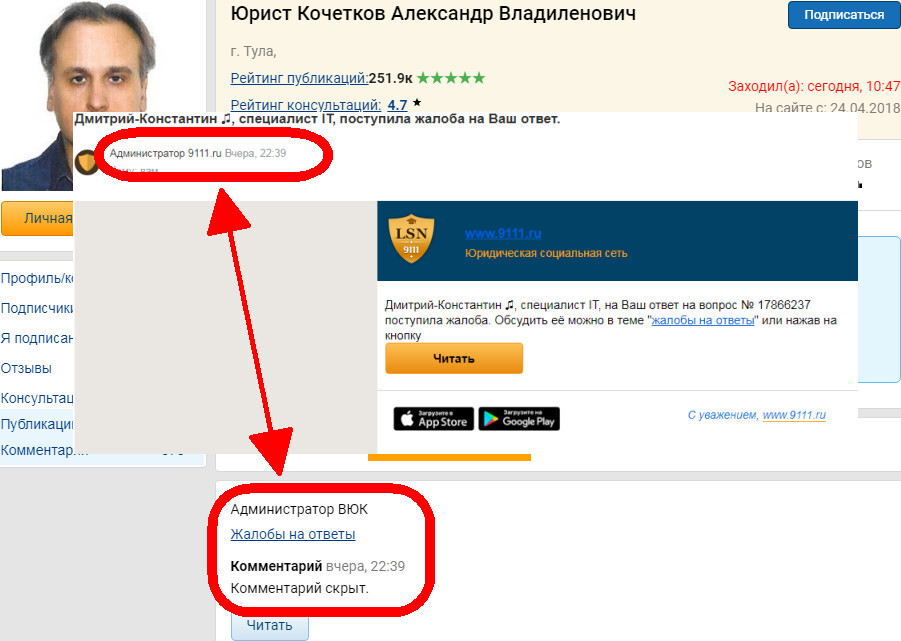 Что ж... Придётся дополнять эту ветку. Кажется, юрист Кочетков стал моим фаном и отслеживает мои ответы, и особливо упоминание собственного имени. От него на меня поступила очередная жалОба администрации данного сайта.